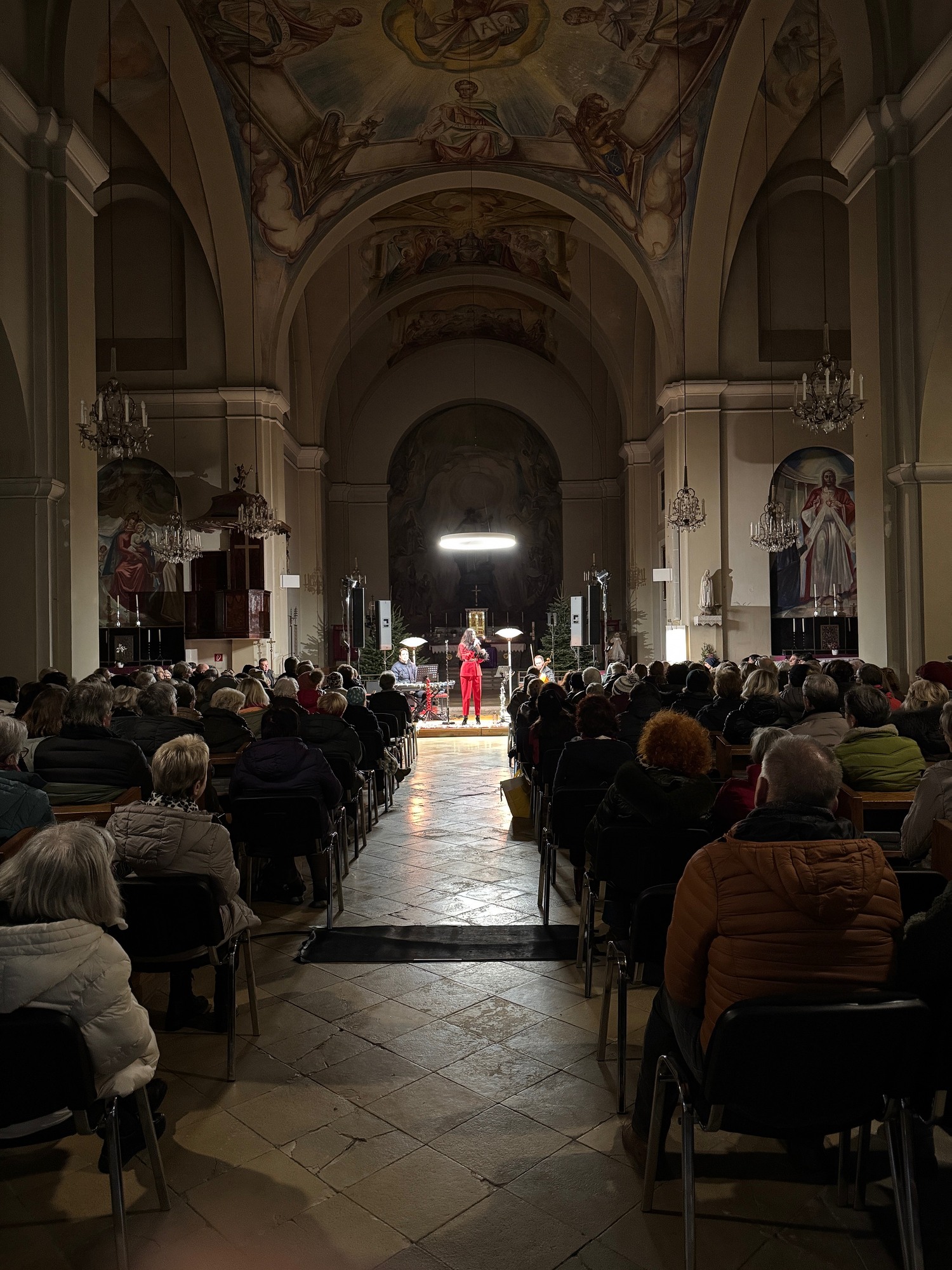 Vor vollem Haus brachte sie mit ihren teils nachdenklichen, teils schwungvollen und mitreißenden Beiträgen vorweihnachtliche Stimmung in die Kirche und hinterließ ein begeistertes Publikum.